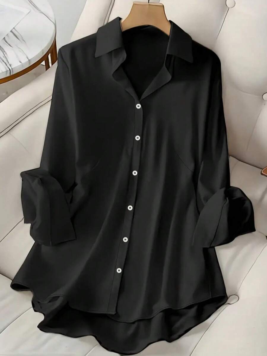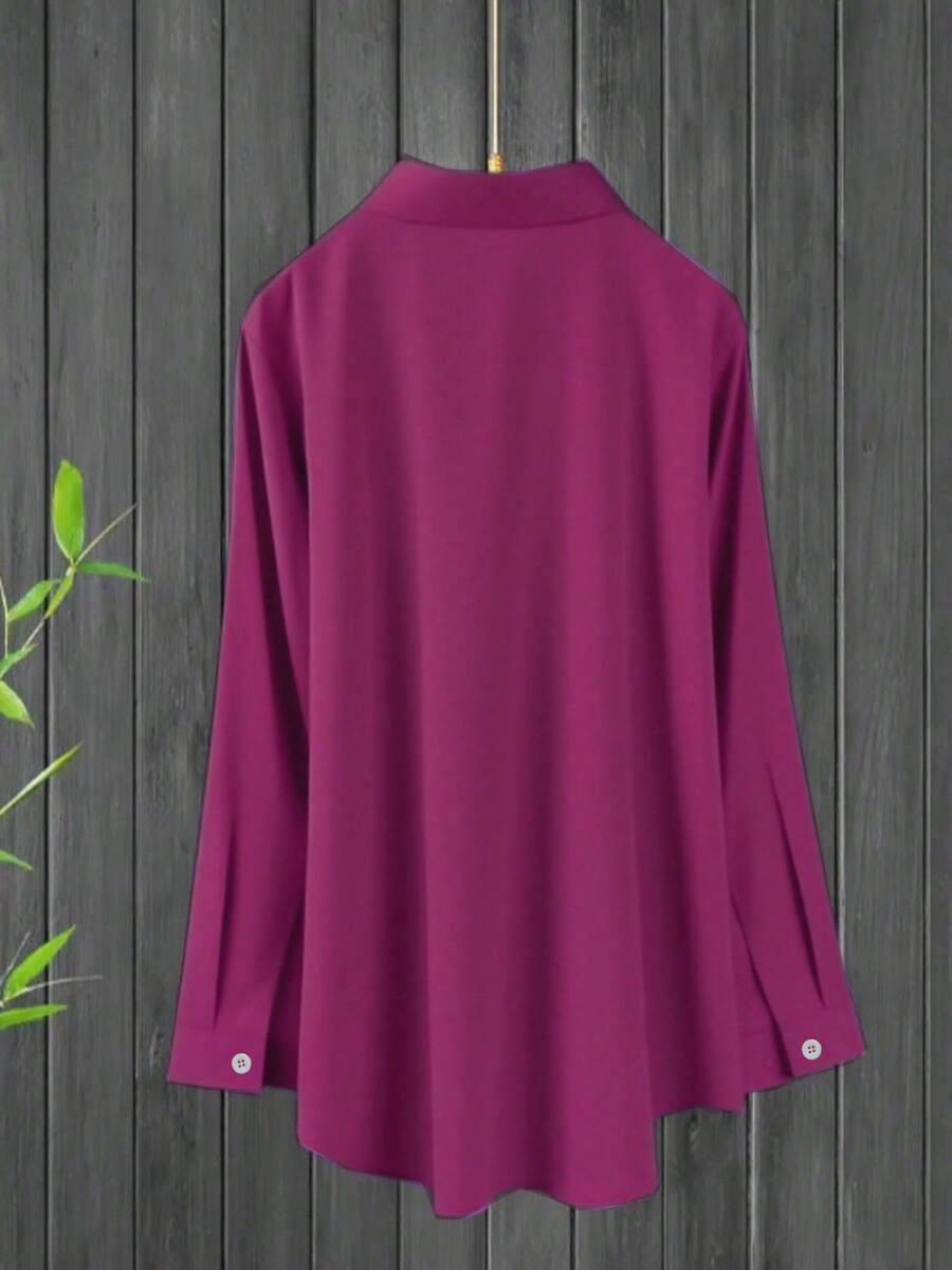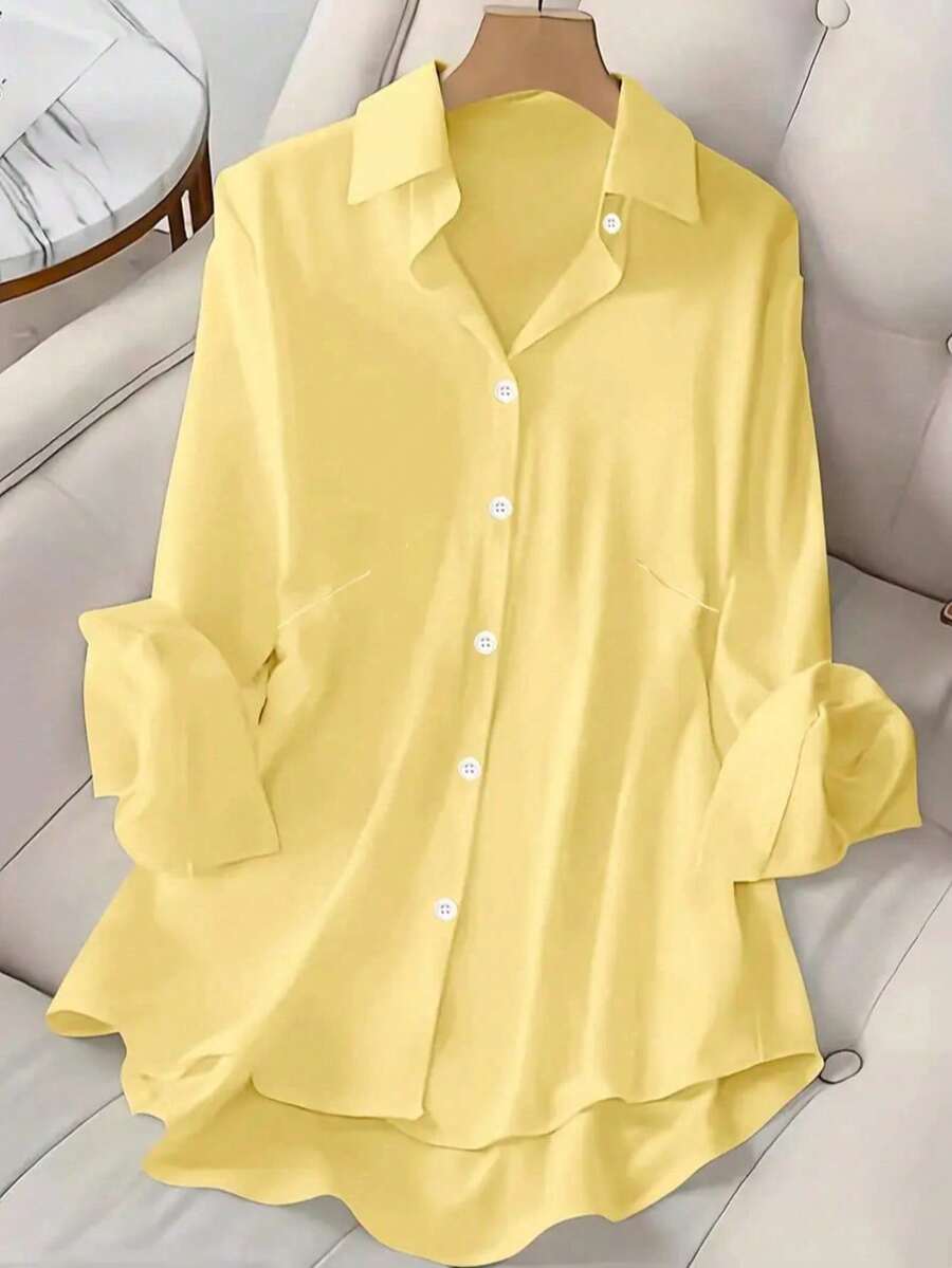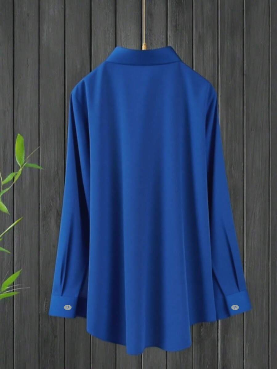 Camisa Feminina de manga regular com gola - Cécile. Plus Size