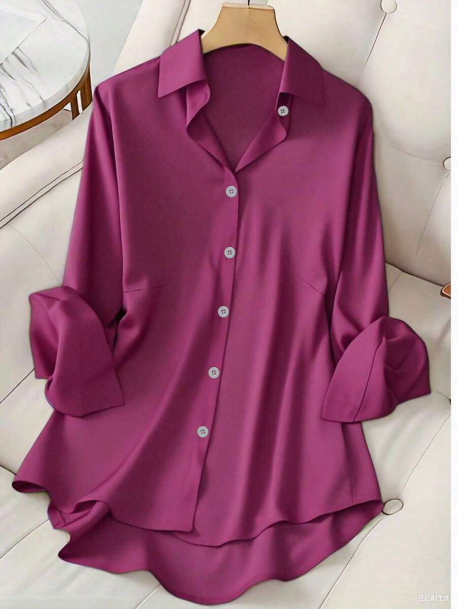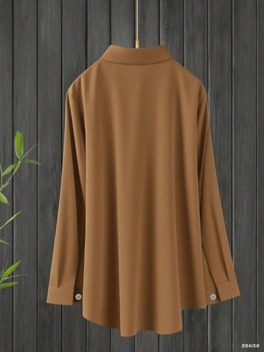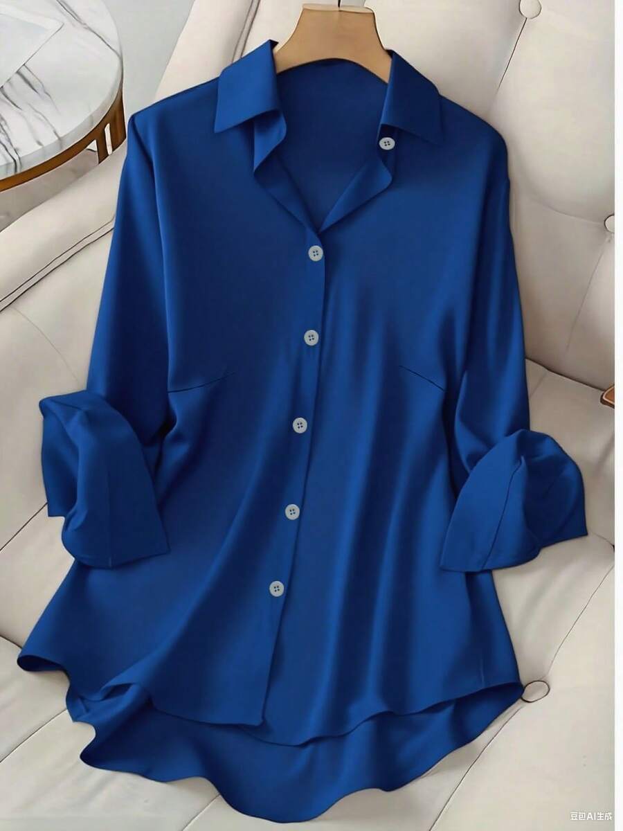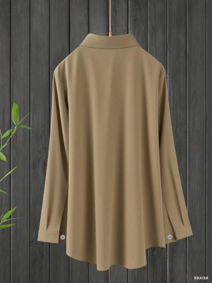 Camisa Feminina de manga regular com gola - Cécile. Plus Size
