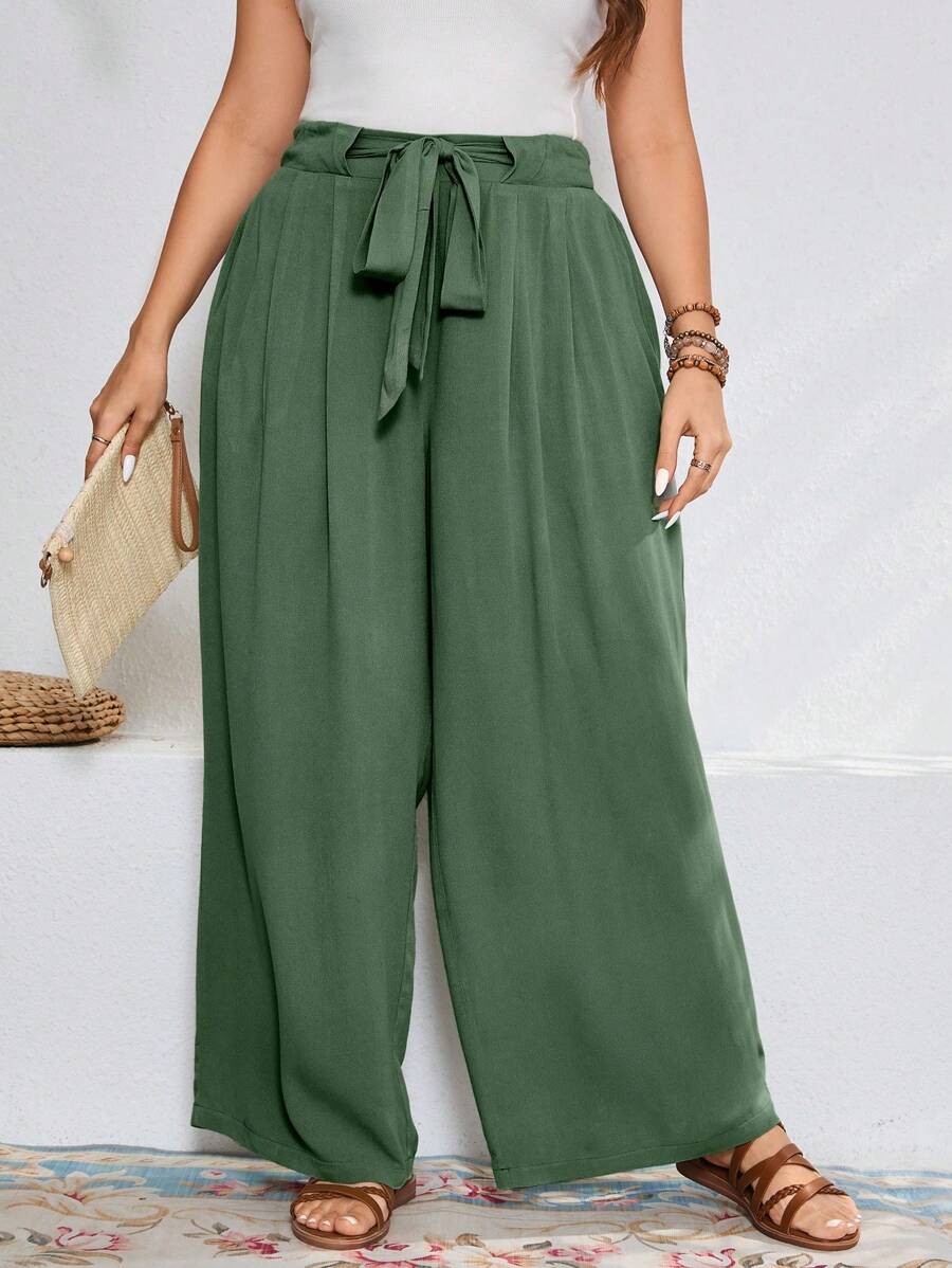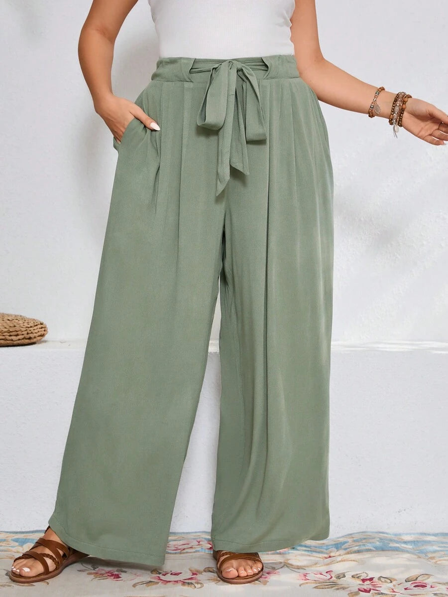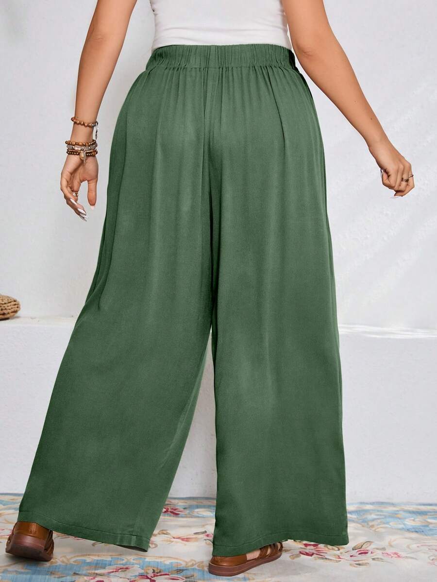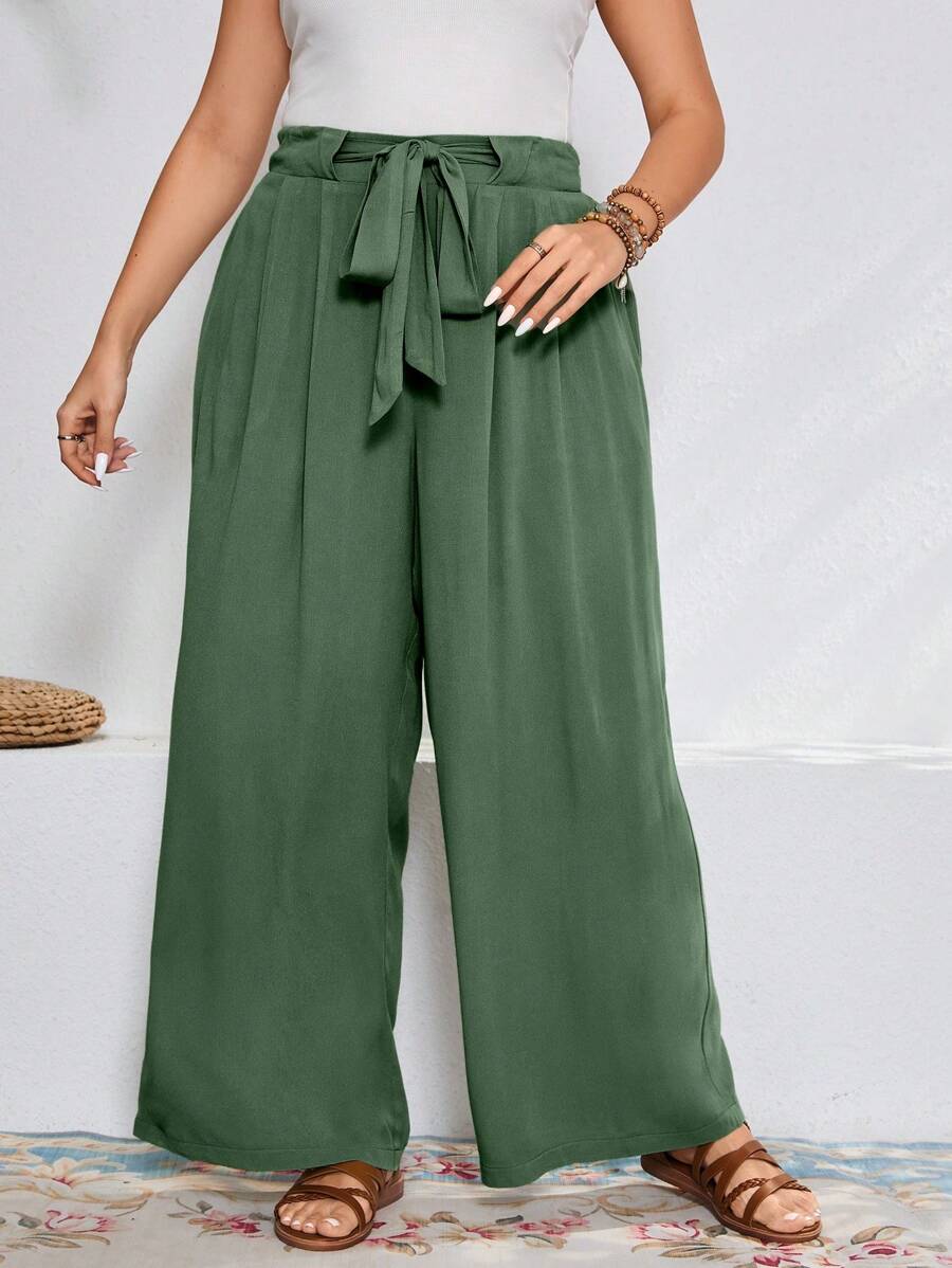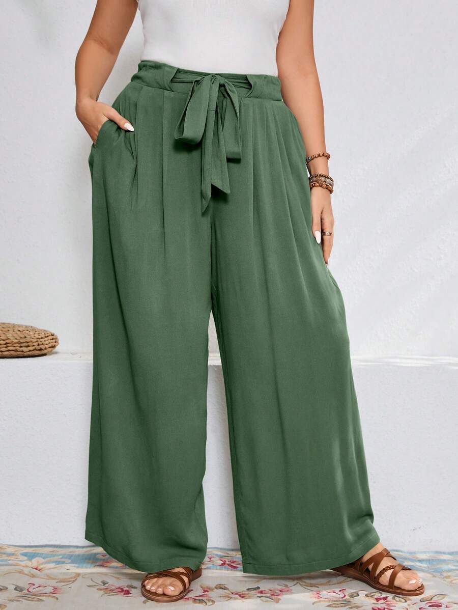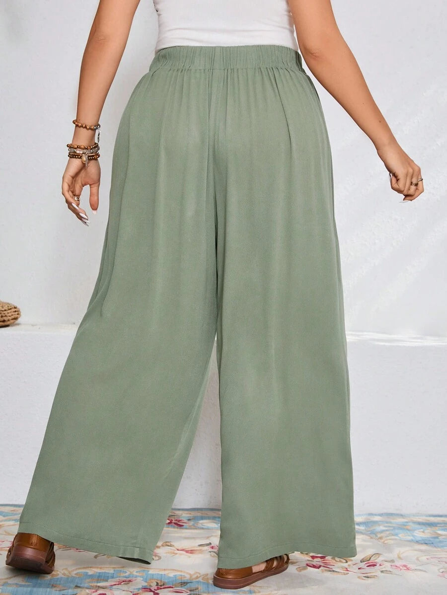 Calça Feminina De Perna Larga Com Cordão Na Cintura - Letícia. Plus Size