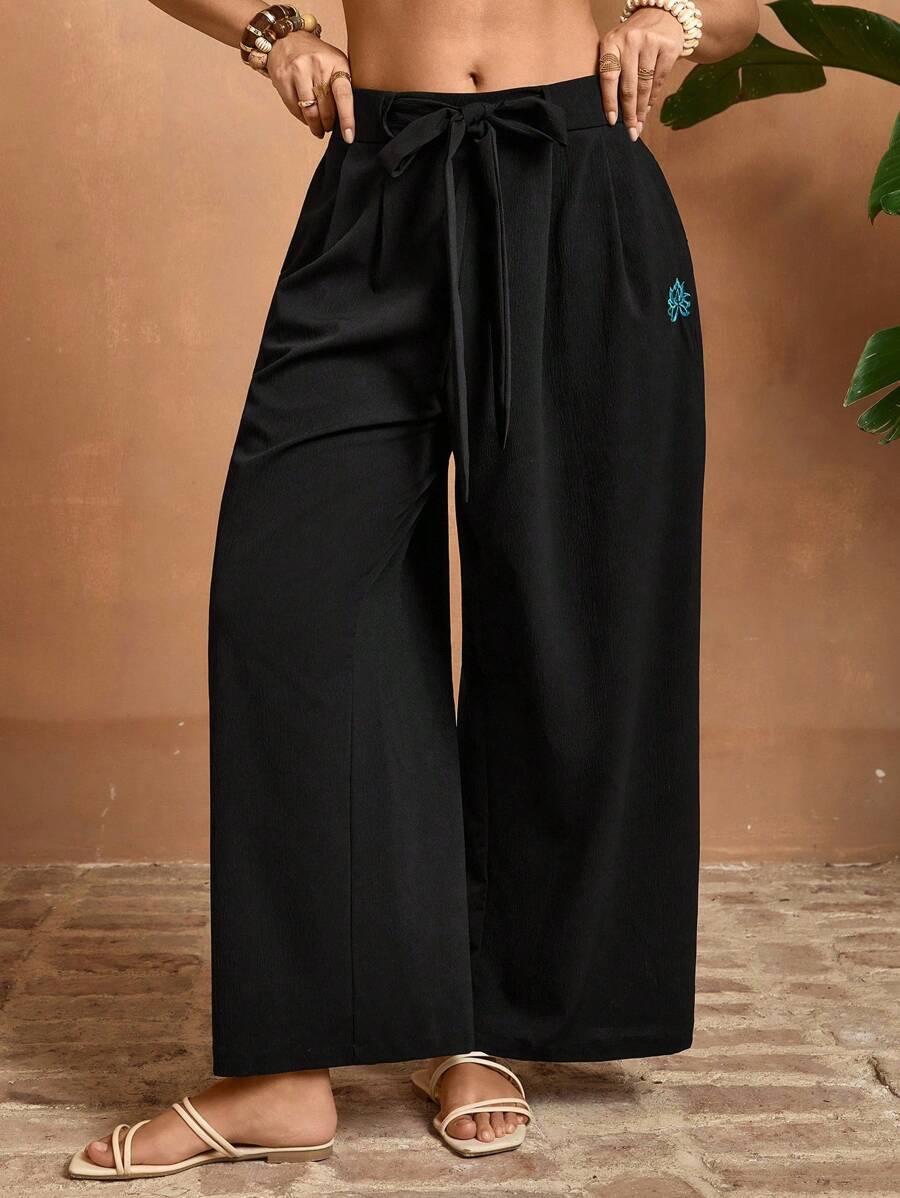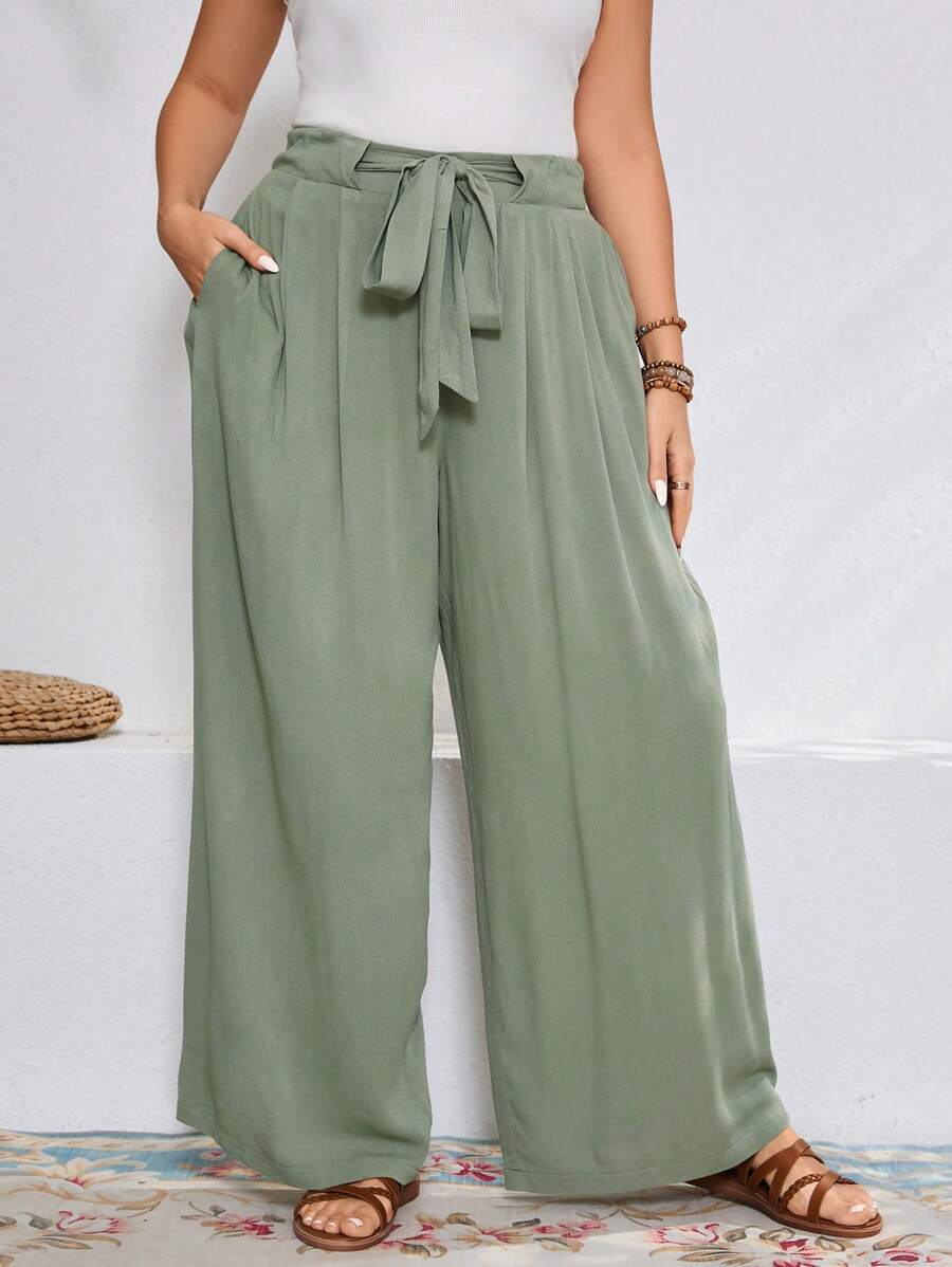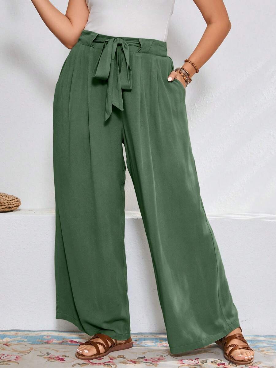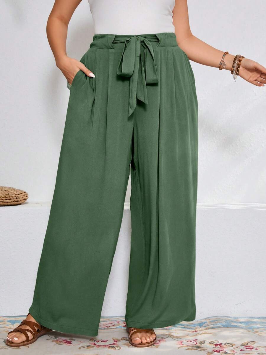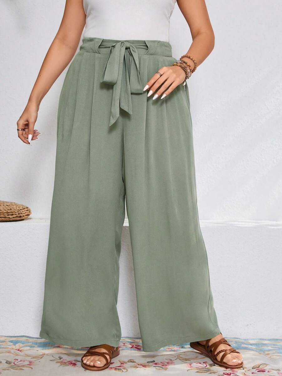Calça Feminina De Perna Larga Com Cordão Na Cintura - Letícia. Plus Size