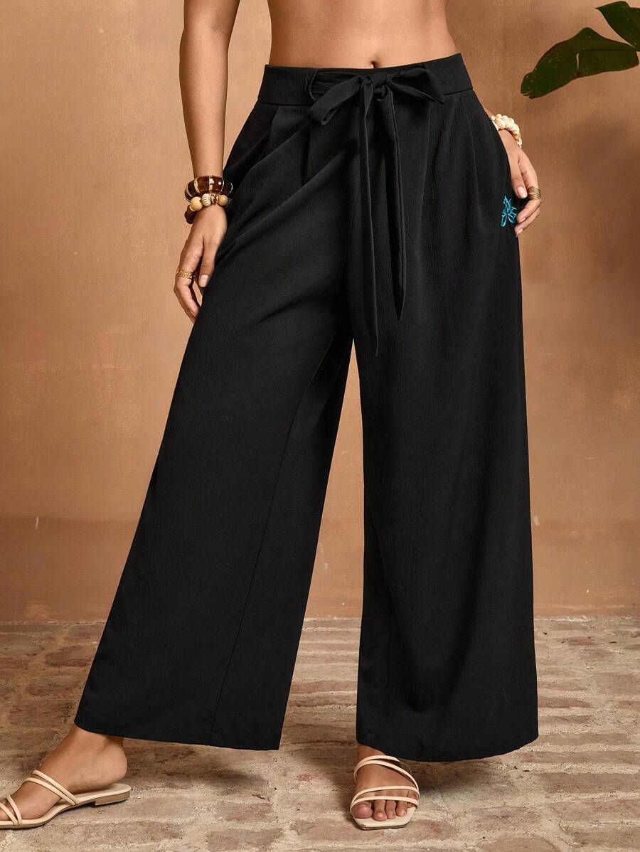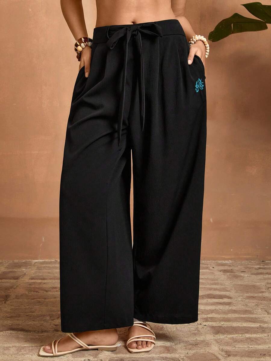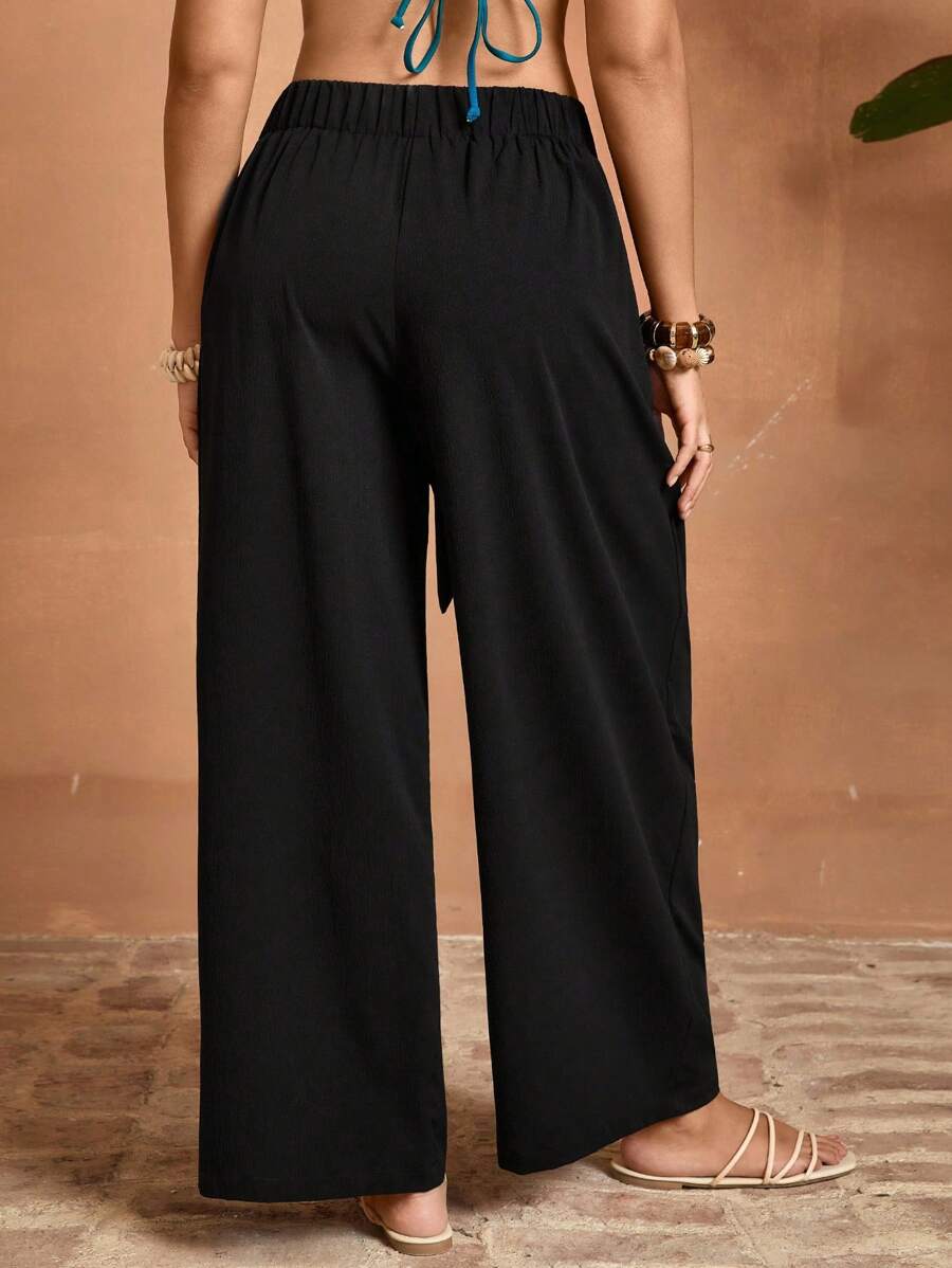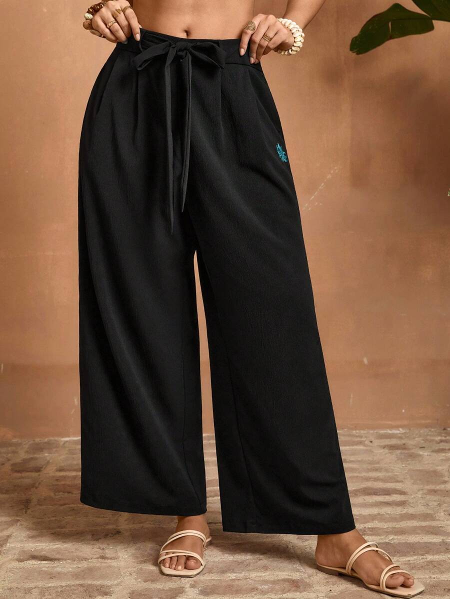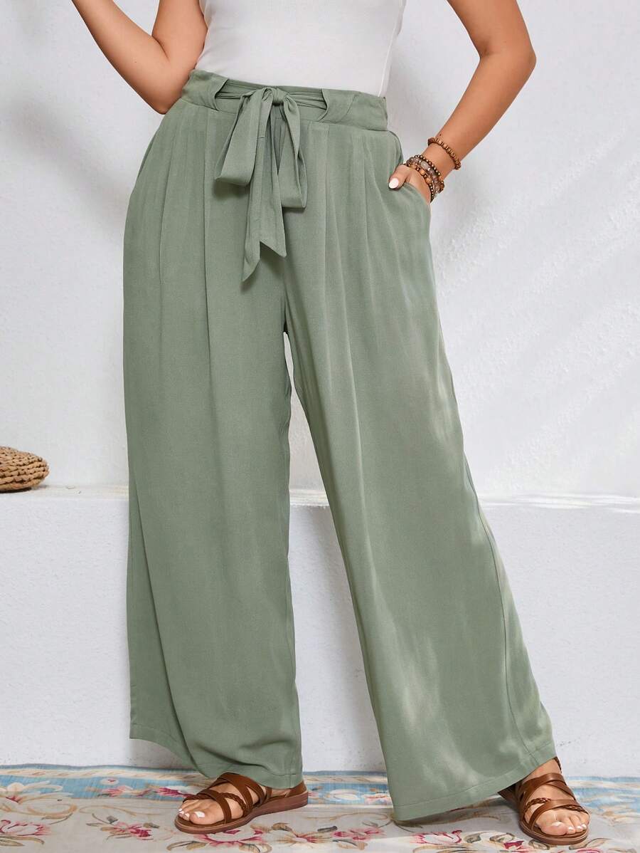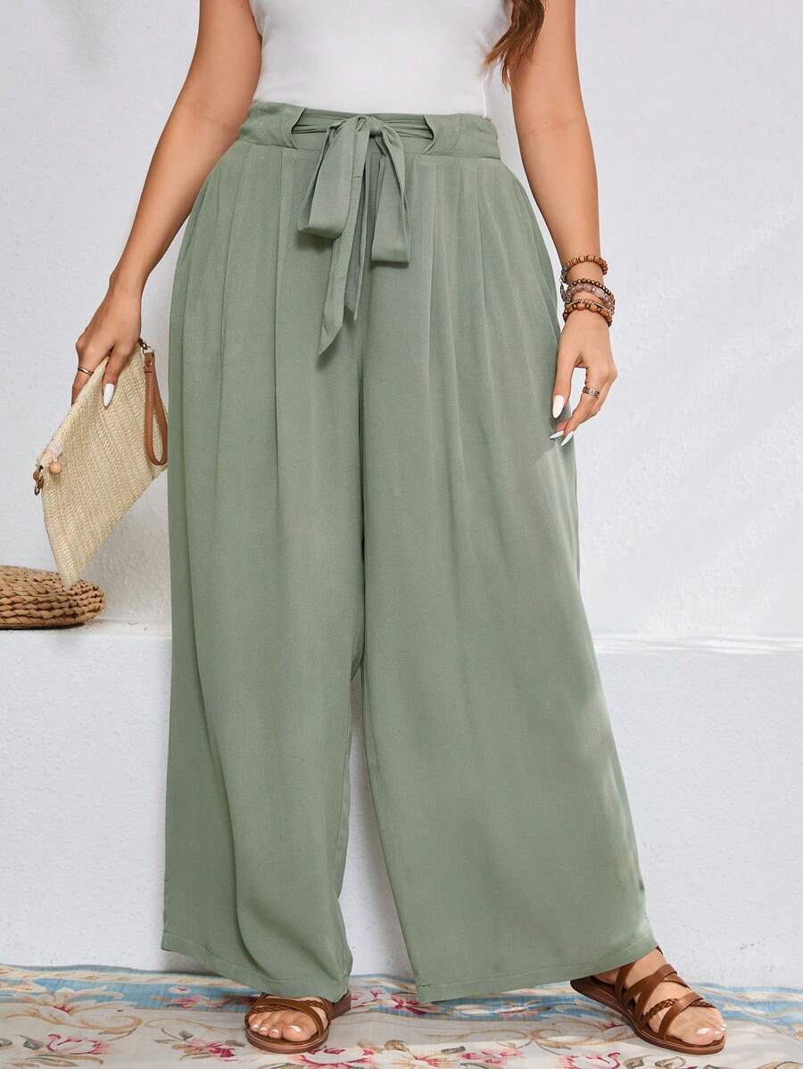 Calça Feminina De Perna Larga Com Cordão Na Cintura - Letícia. Plus Size
