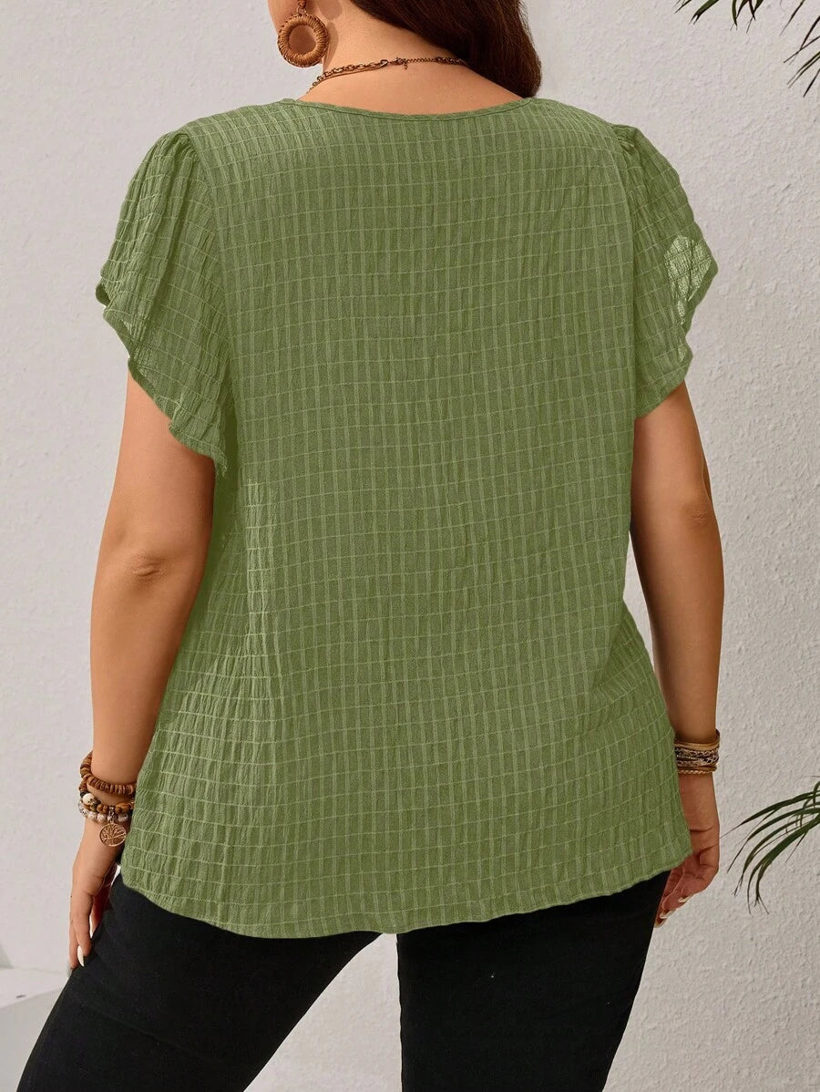 Blusa Feminina com Manga de Pétalas - Celina. Plus Size