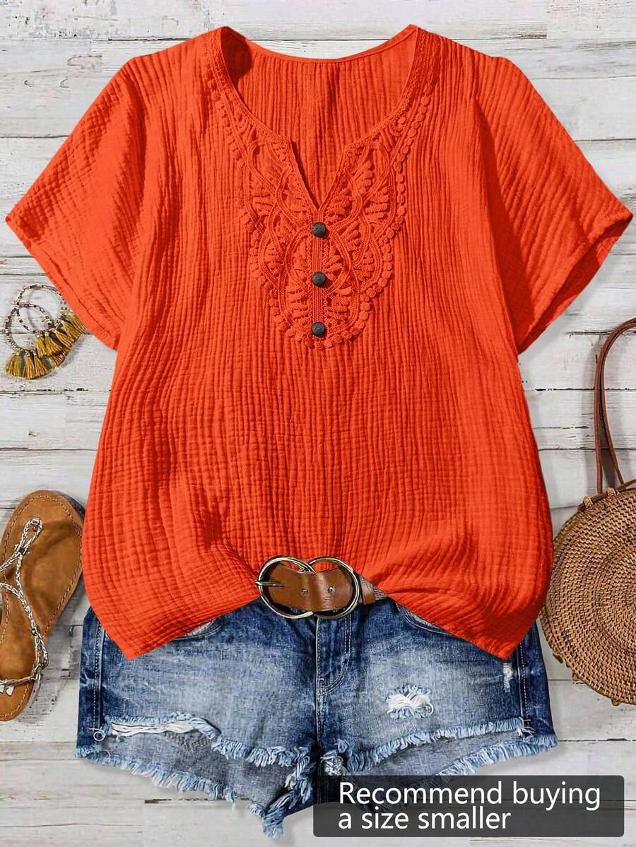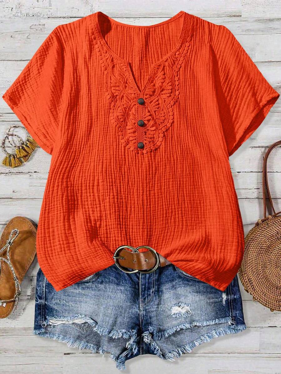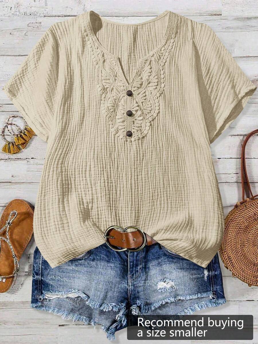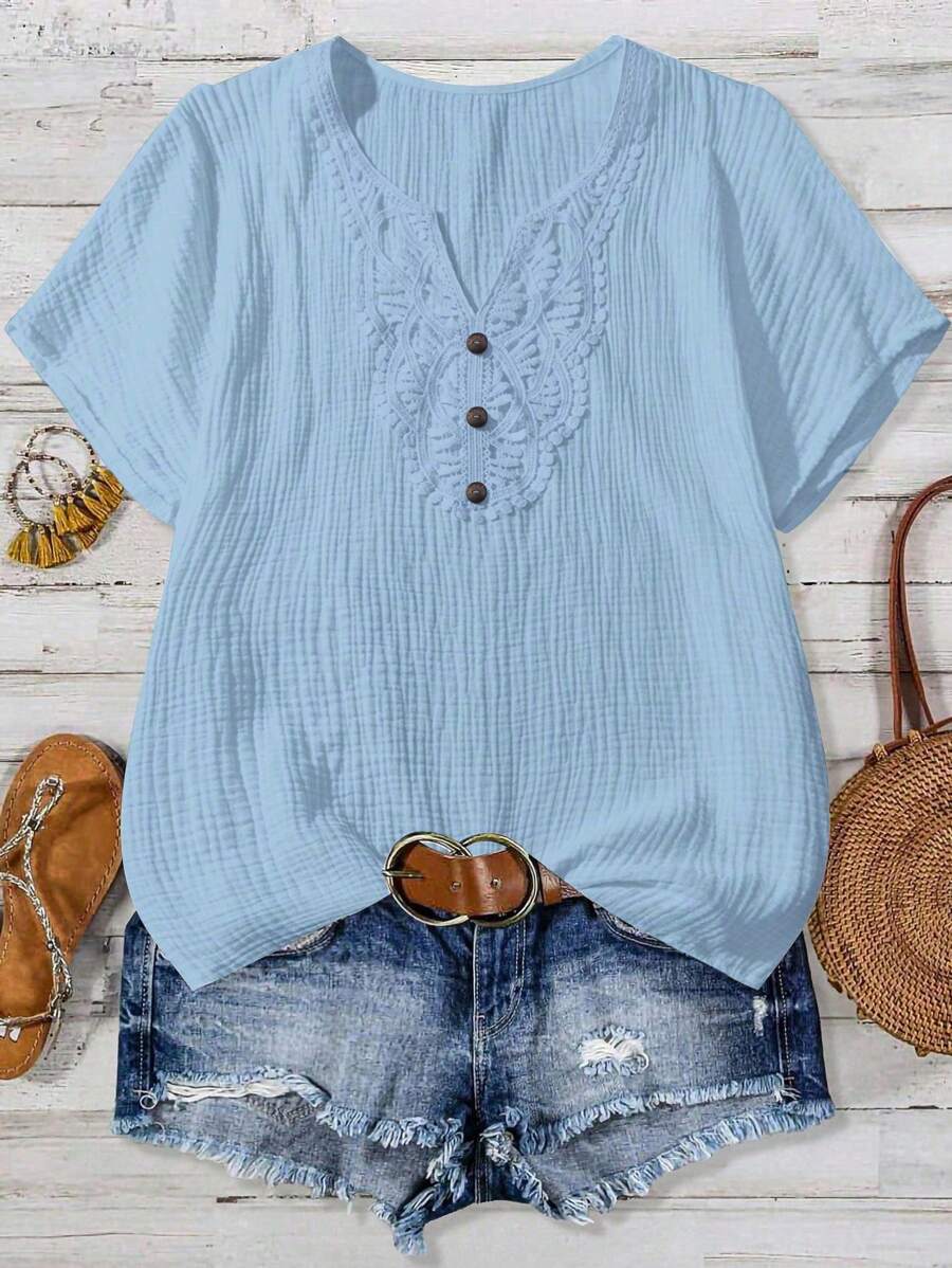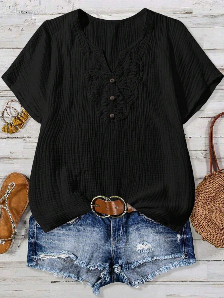 Blusa Feminina com Recortes de Renda e Decote em V - Chloe. Plus Size