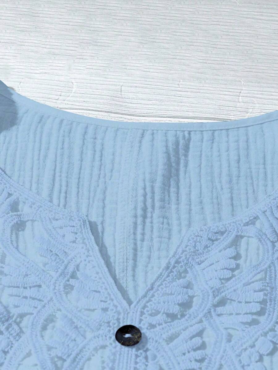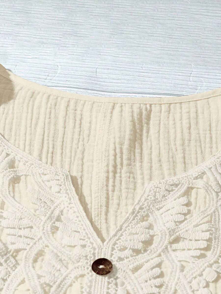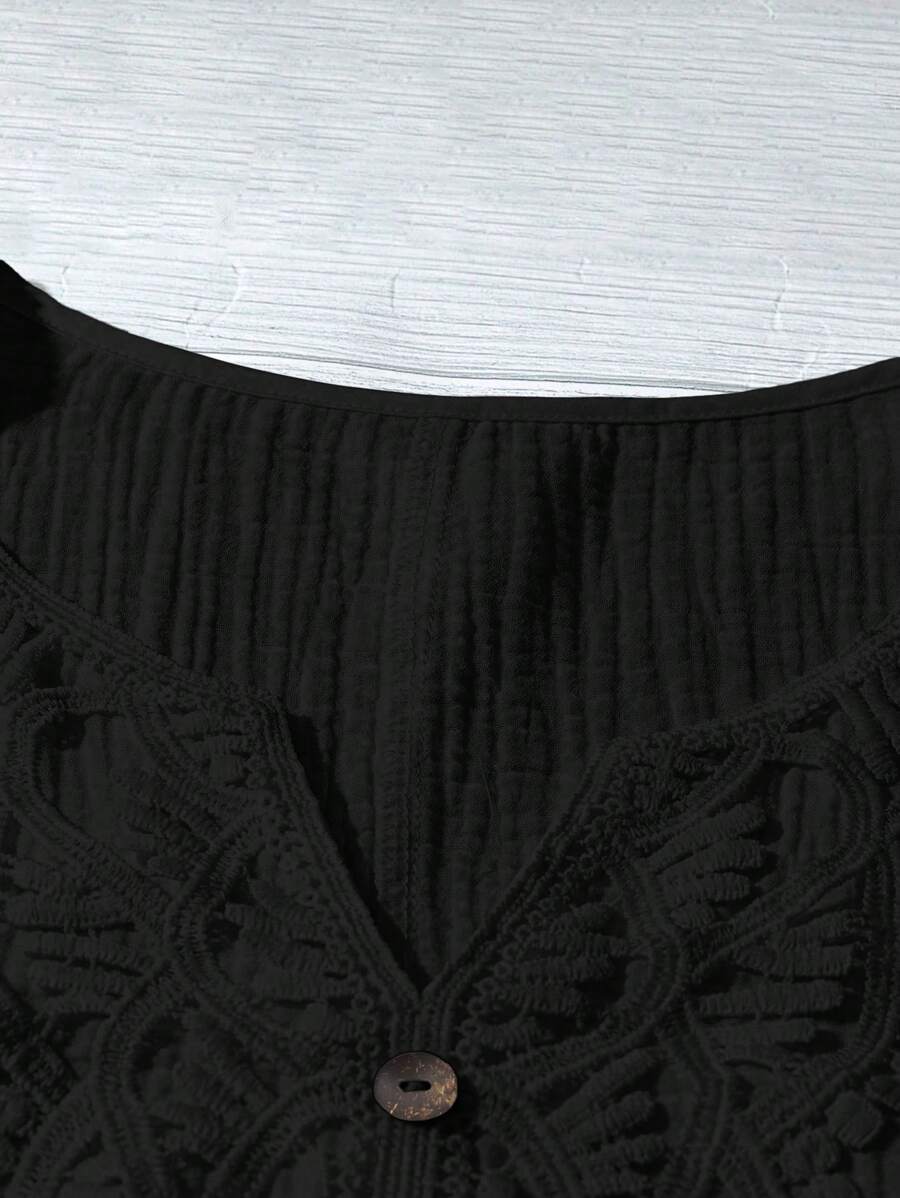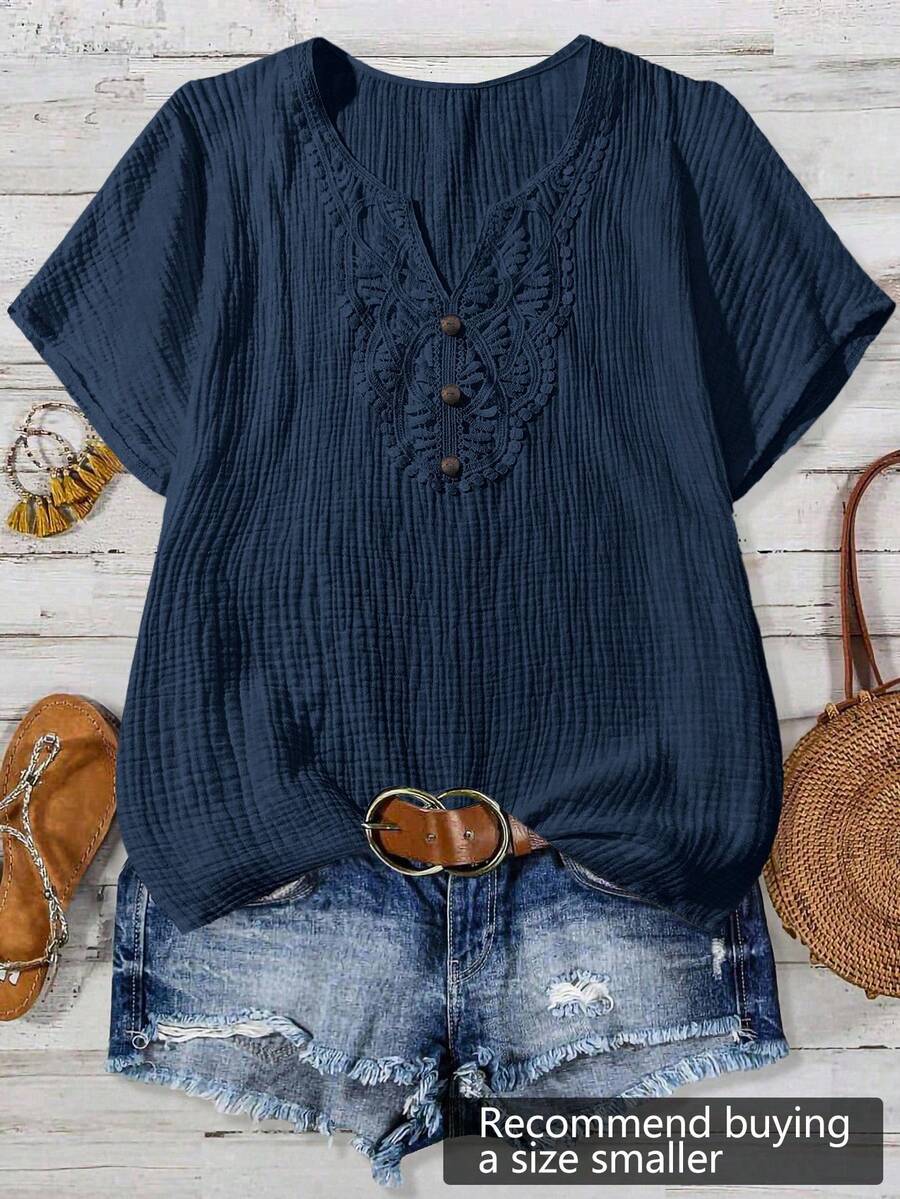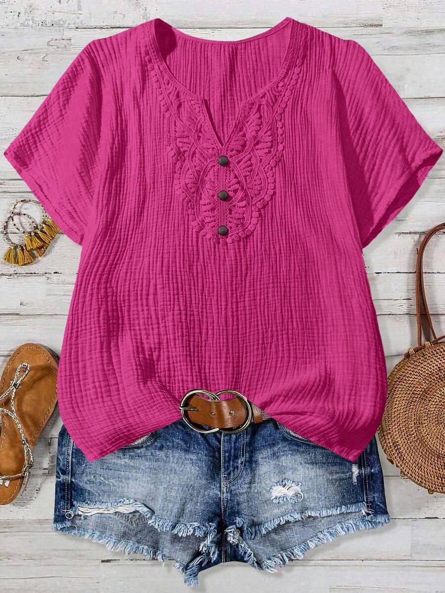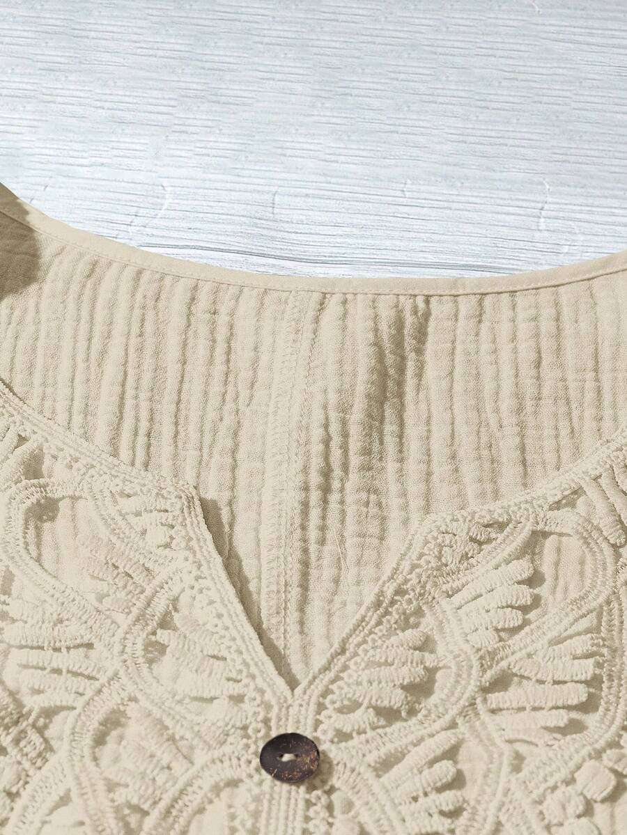Blusa Feminina com Recortes de Renda e Decote em V - Chloe. Plus Size