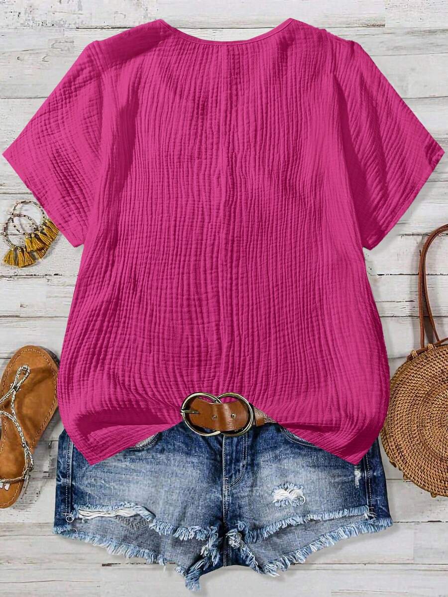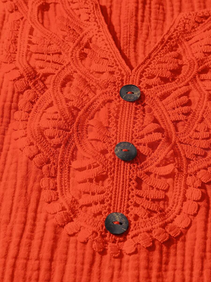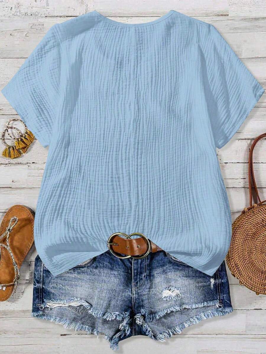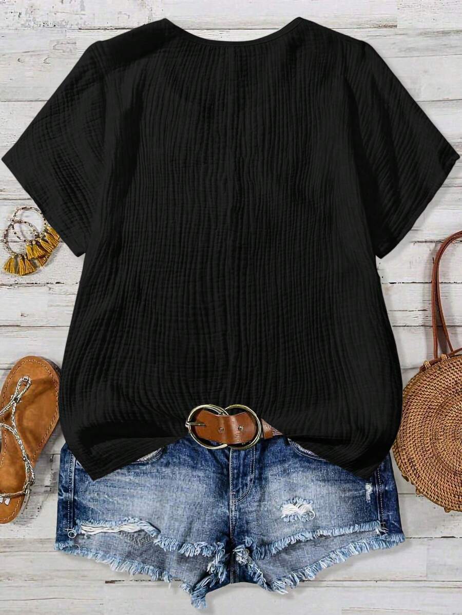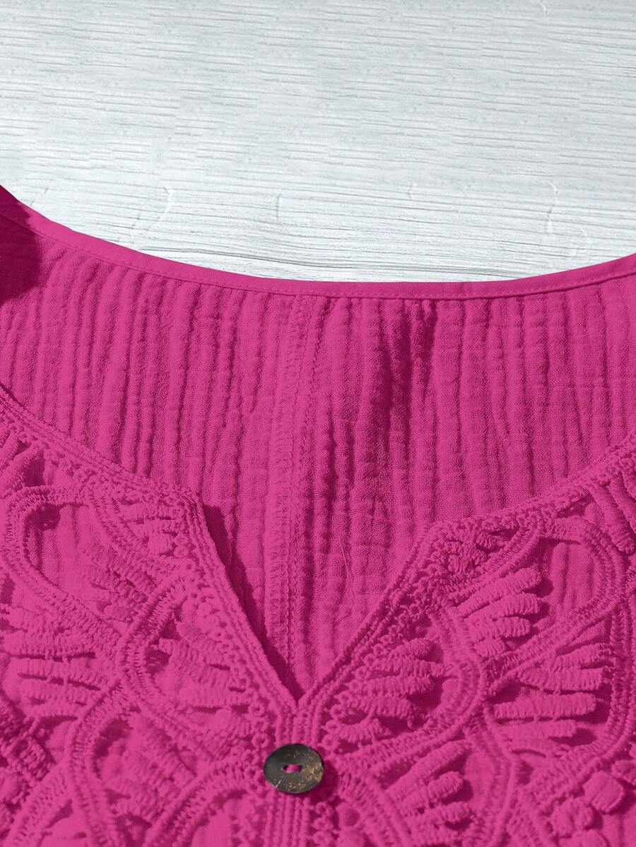 Blusa Feminina com Recortes de Renda e Decote em V - Chloe. Plus Size