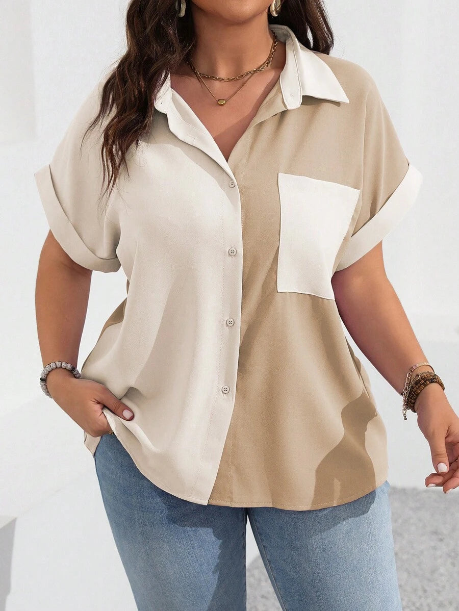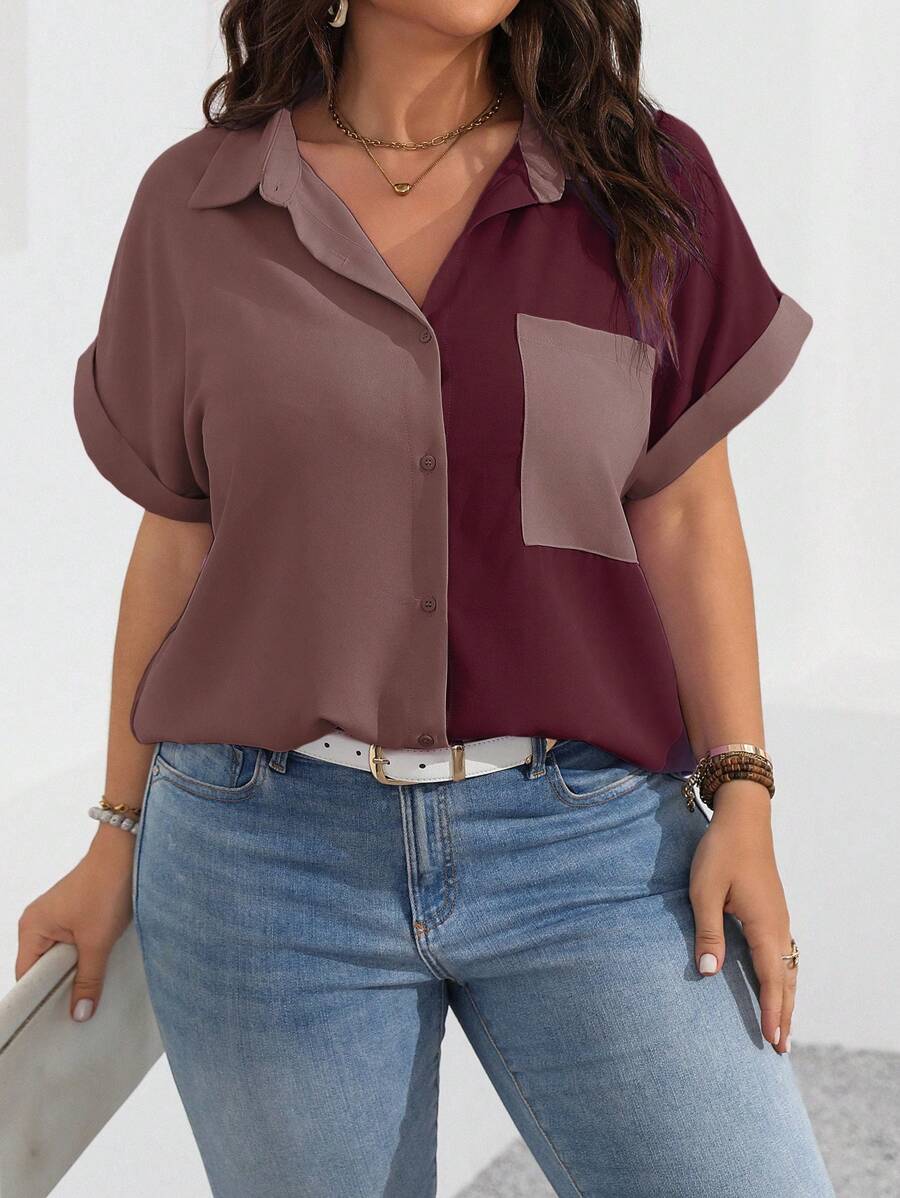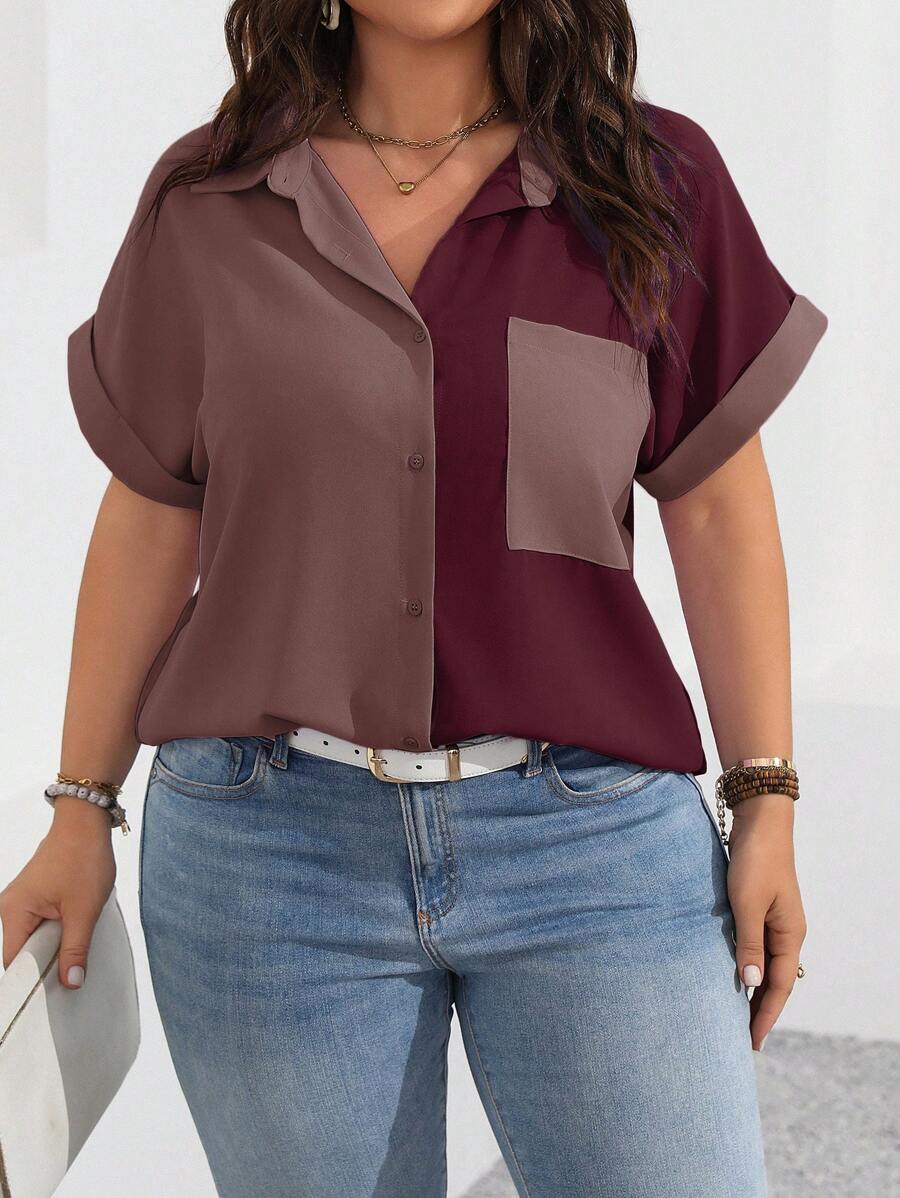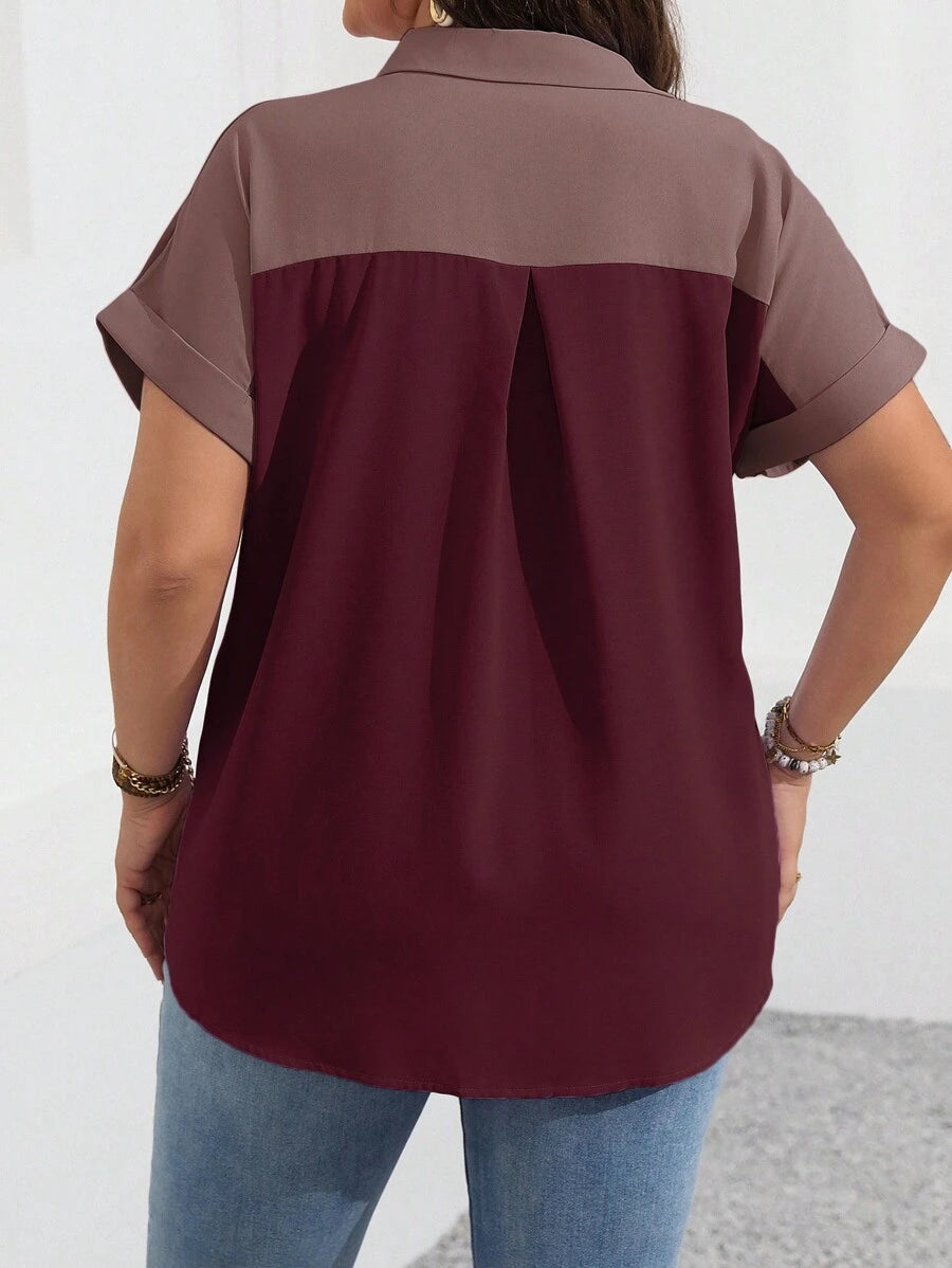 Camisa Feminina de Manga Curta de Bloco de Cor - Roma. Plus Size