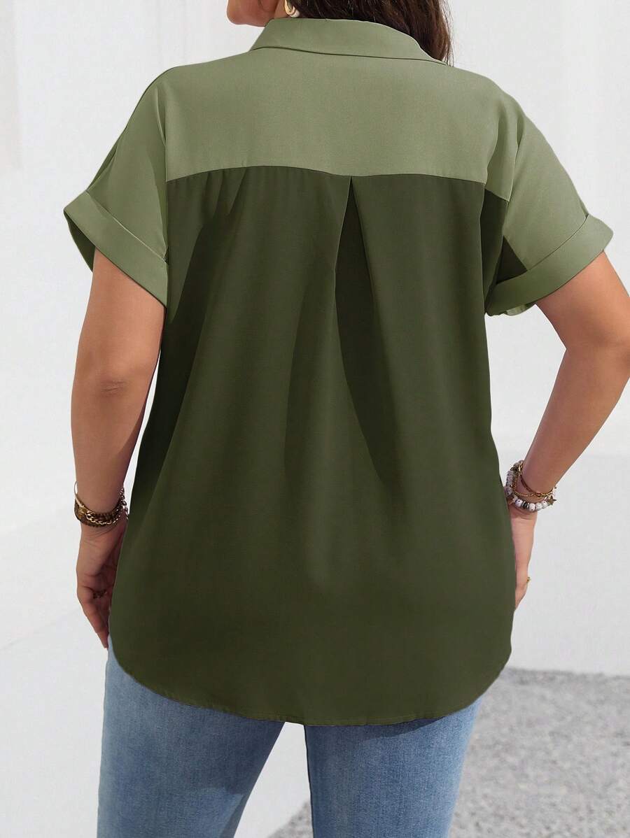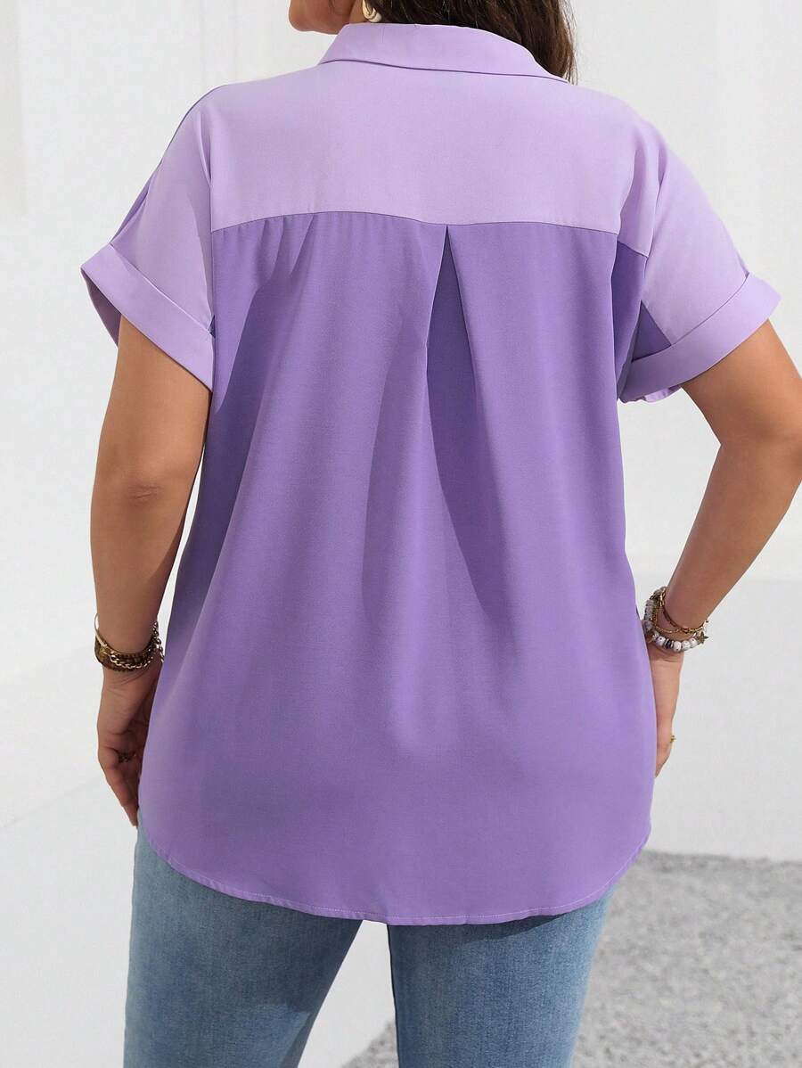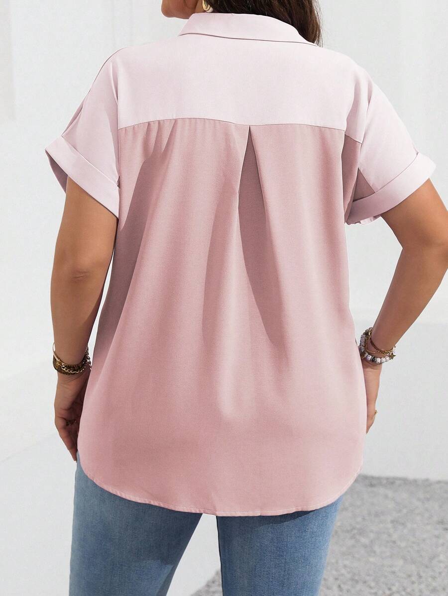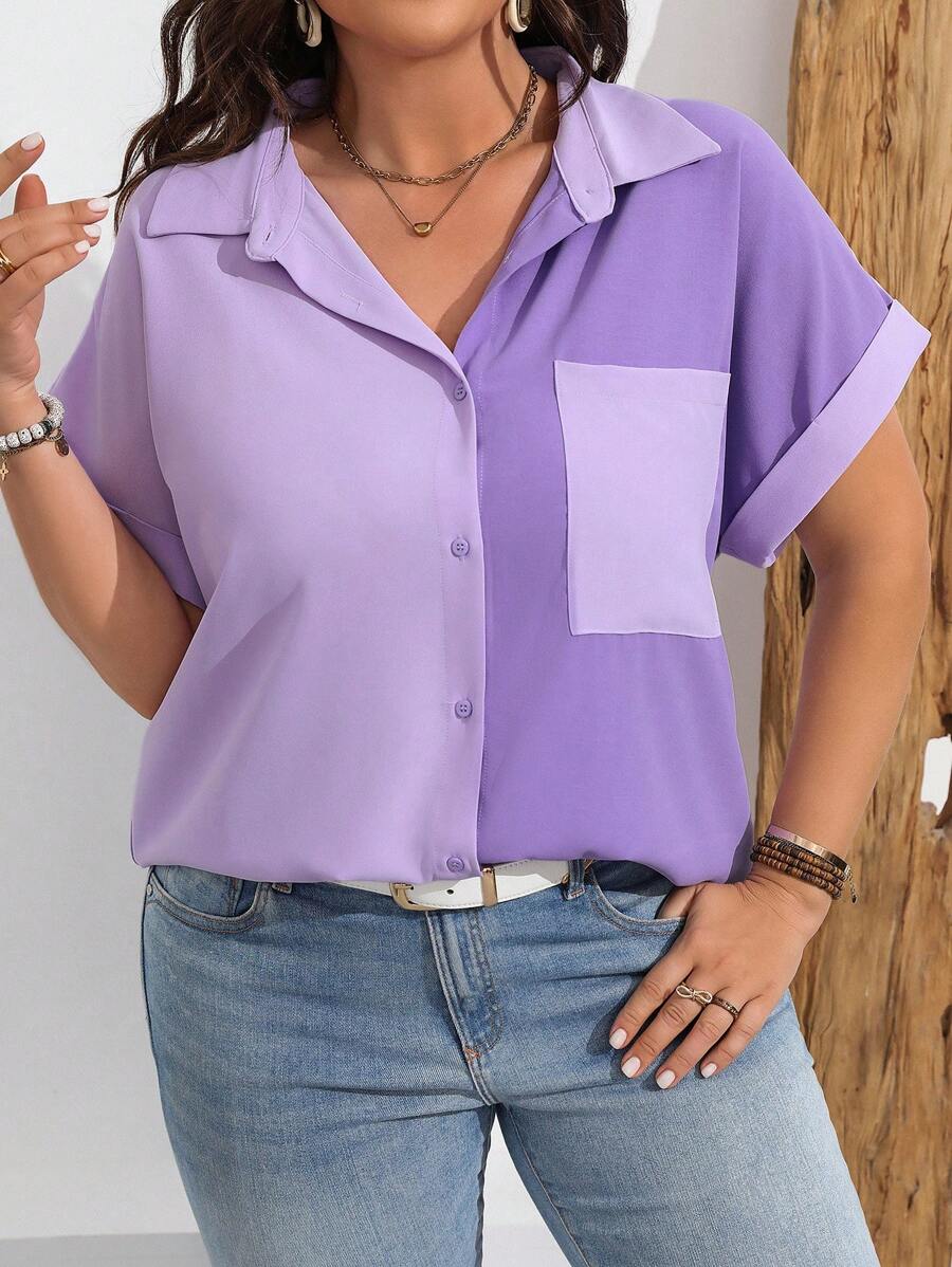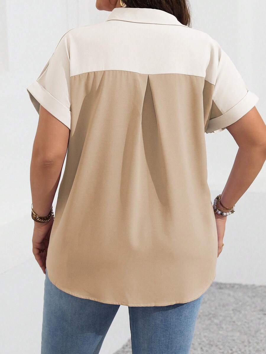 Camisa Feminina de Manga Curta de Bloco de Cor - Roma. Plus Size